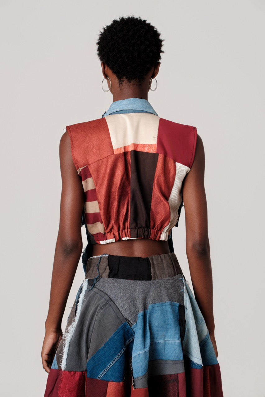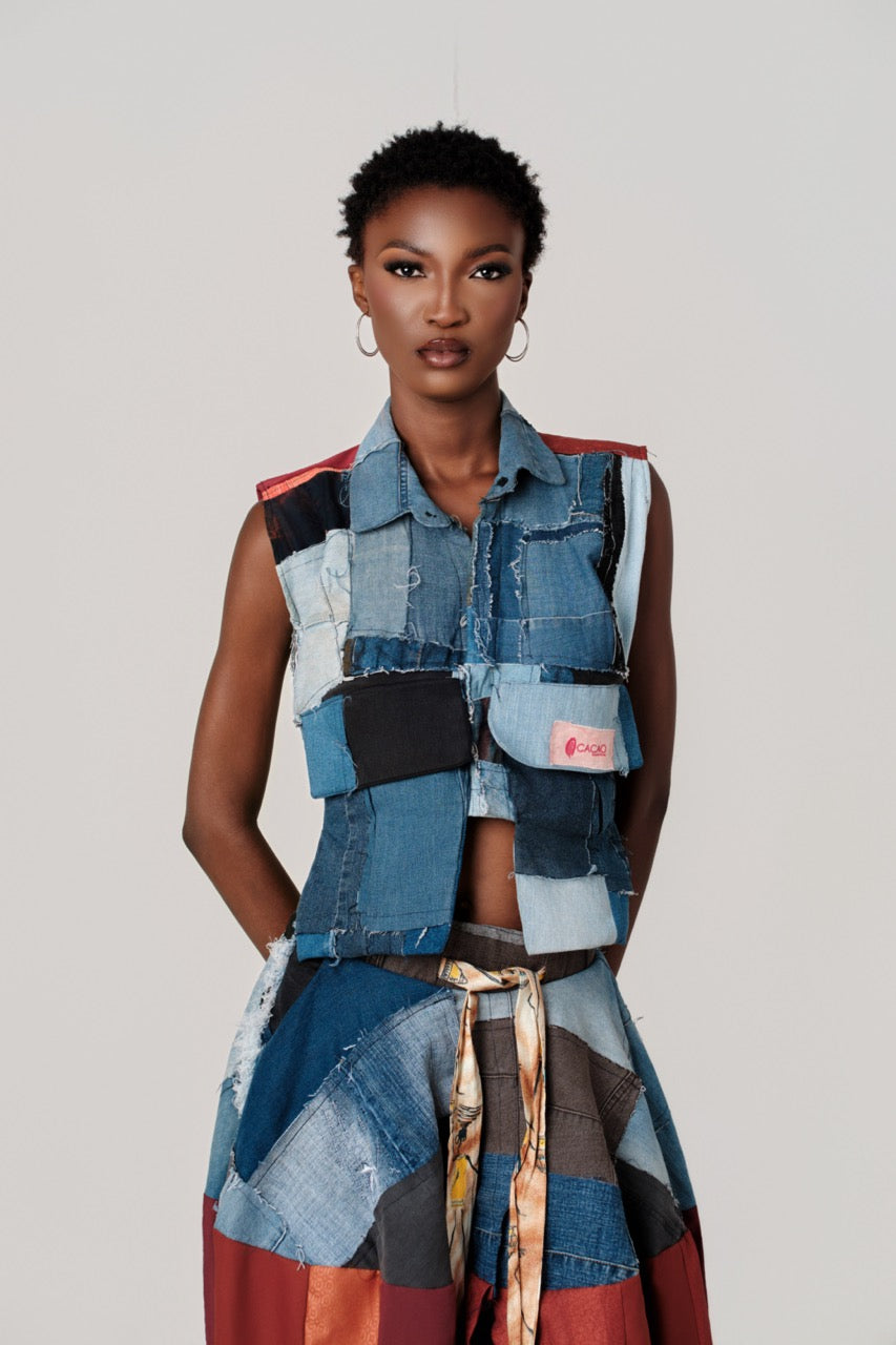Sleeveless Denim Top: The Top is a perfect patchwork vest crafted from assorted denim pieces in various shades of blue,... Read more